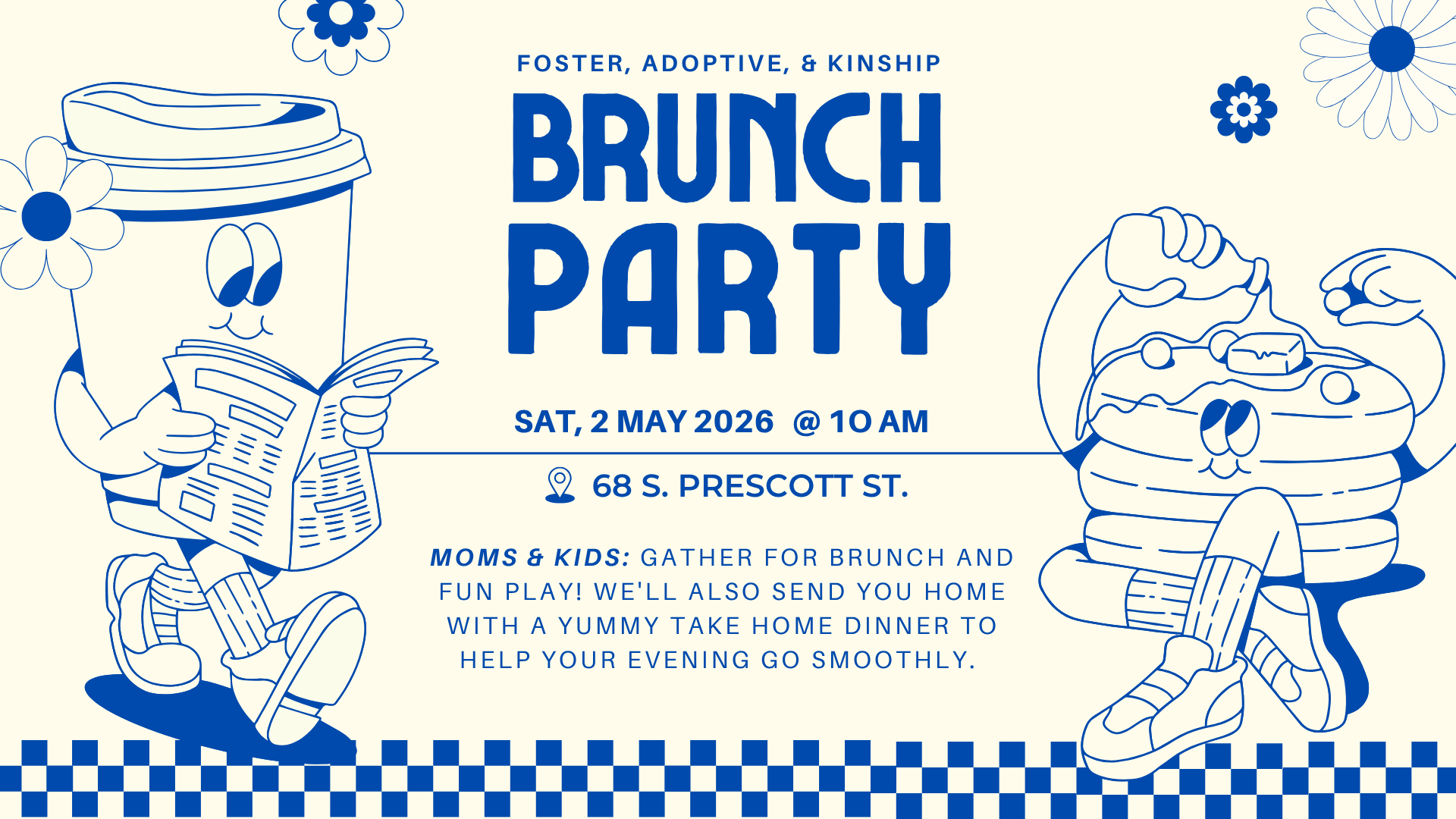 Moms & Kids: Gather for brunch and fun play! We'll also send you home with a yummy take home dinner to help your evening go smoothly. Please register everyone who will attend with you so we can plan for food needs.