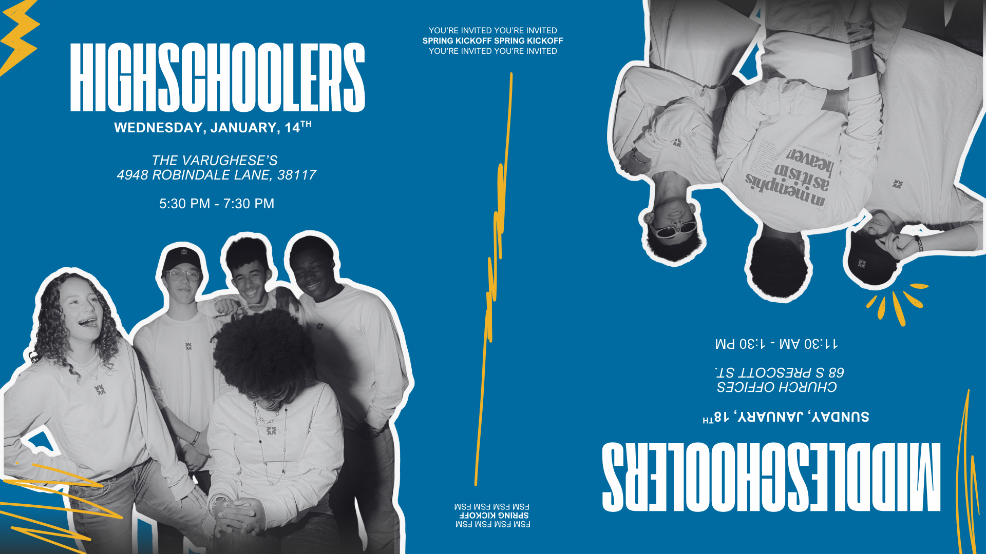 Join us for our High School Spring Kickoff as we share a meal and look ahead at what’s coming for FSM. We’ll hang out, talk about the vision, upcoming opportunities, and how you can be part of what God is doing this spring. Dinner will be provided—come hungry and ready to talk about the spring together!